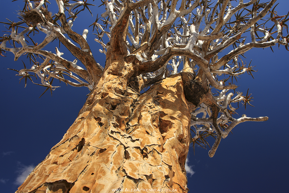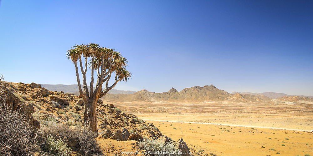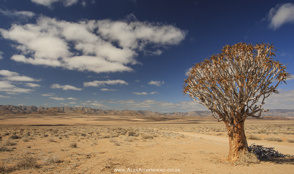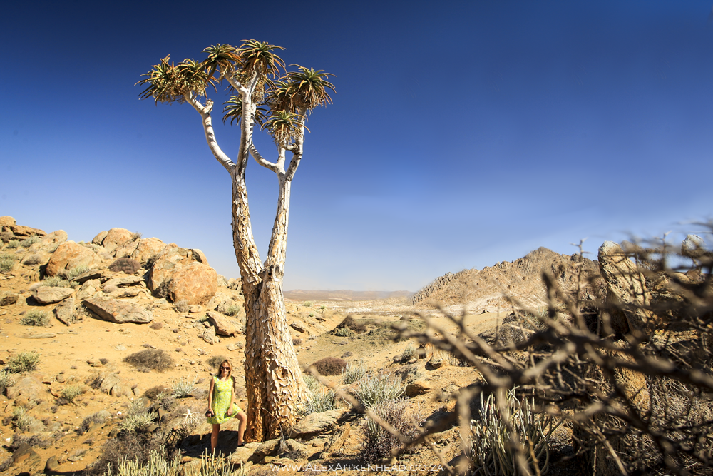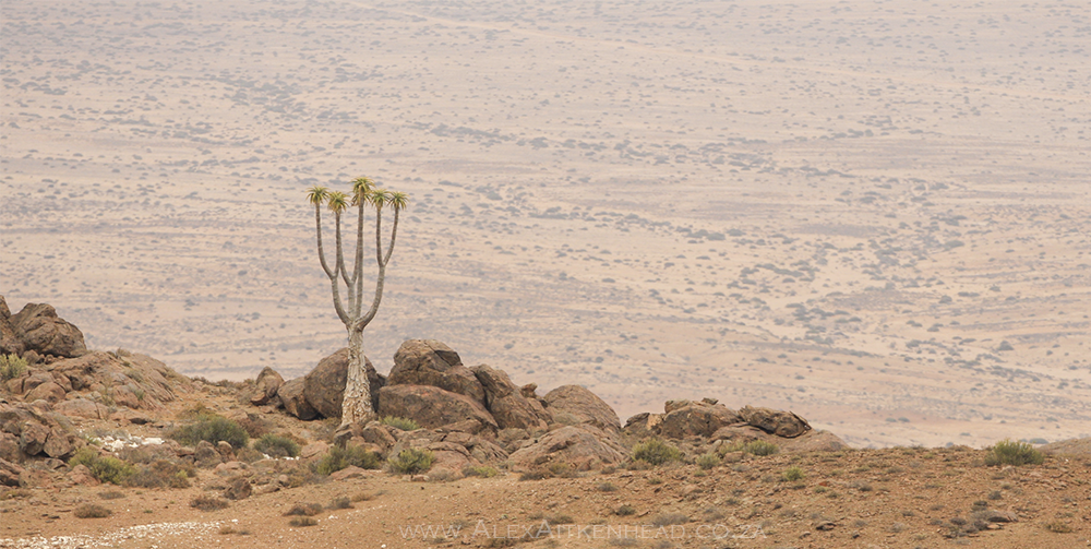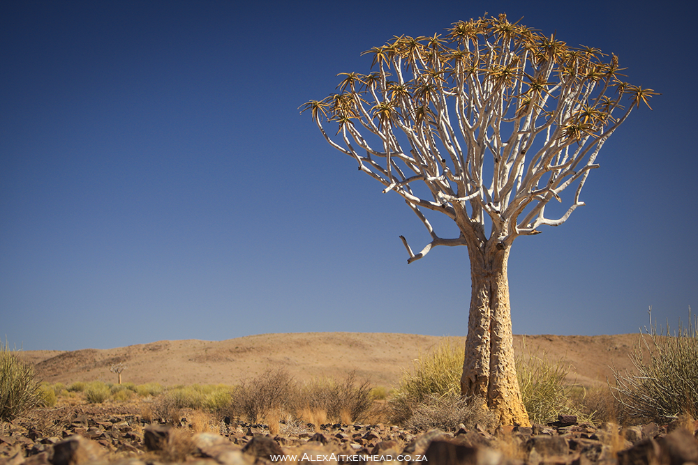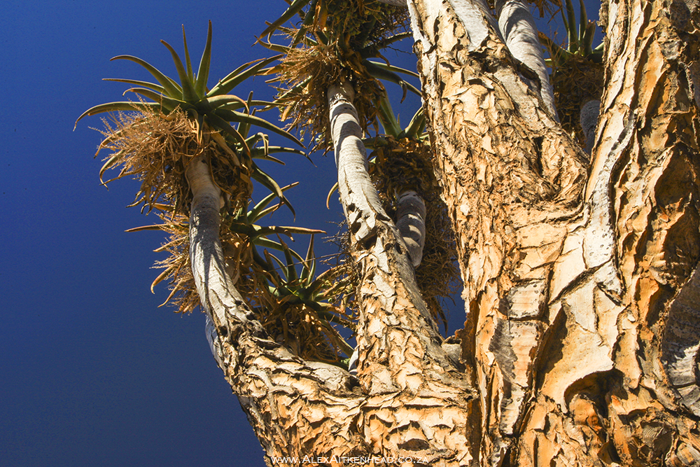 Stopping to record these remarkable giants of the desert, appreciating their struggle for survival and contrasting beauty this is what has drawn us to this extravagant landscape (Aloe pillansii-Bastard Quiver tree / Aloidendron dichotomum-Quiver Tree).