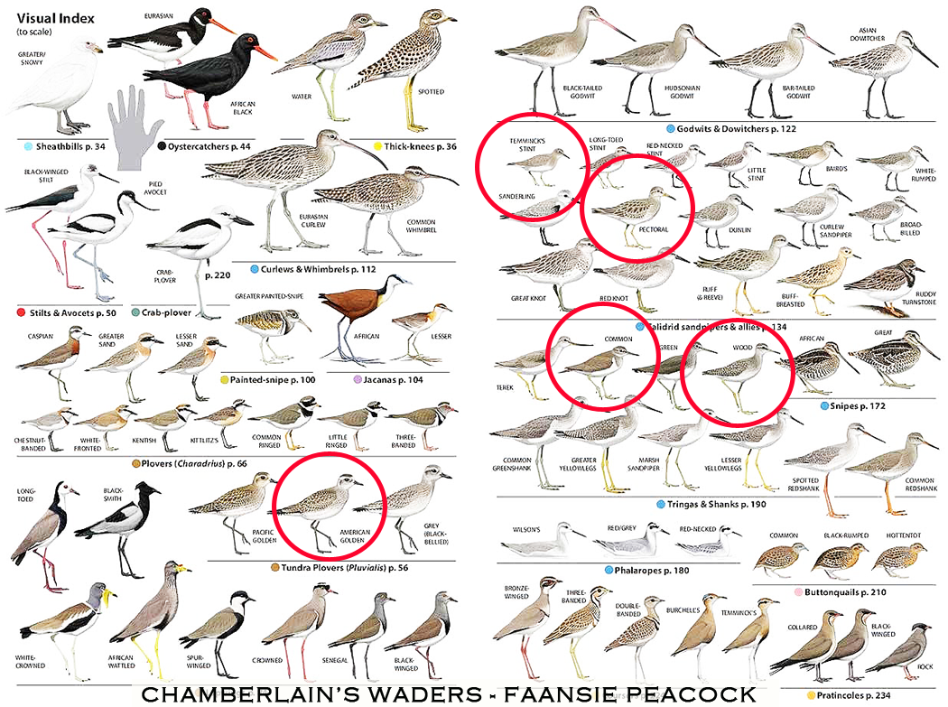 Terek Sandpiper, Bar-tailed Godwit, Red-necked Phalarope and the African Jacana.